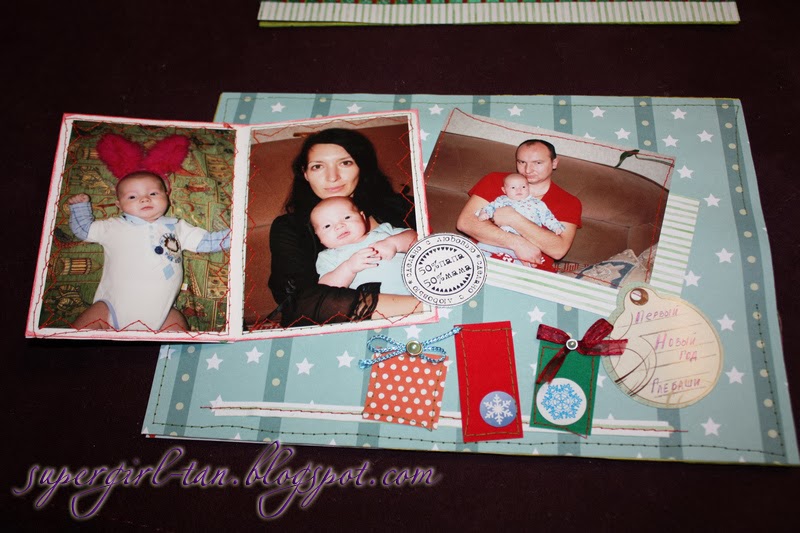 а вот как раз и прошло! На этих страничках фотки трехгодичной давности. Решила я продолжить незаконченное дело (а у рукодельниц столько всего начато)- скрапальбом первого годика жизни моего среднего, но решила делать постепенно, соответствуя хронологии.